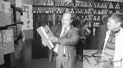 邵武茶叶交易市场内设有名优茶展示厅,汇聚闽北乃至全省的精品茶叶。图为茶叶市场总经理王中全在展示厅中向顾客介绍精品茶叶。