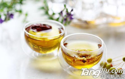 4.菊茶茶叶2克,干菊花2克,以开水冲泡5分钟,每日饭后1杯。有降热解毒、清肝明目、镇咳止痛、降脂抗衰功效。
