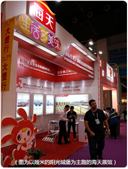 在广交会琶洲展馆内的海天展馆,今年展馆的展示方式较以往有些不一样。在展馆内,海天以邀请客户参观娅米的阳光城堡为主题,重点展示了超大规模晒场、极速灌装包装线、立体彩仓和国家认可实验室等景点,充分展示了海天在行业内领先的工艺和科技水平。在展馆外,以“娅米”作为展会的形象人物在门口迎接国内外友人,进一步增强展位的亲切感,拉近了与客户之间的距离,成为本届展位的亮点。