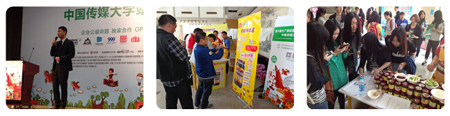 会场外,海天味业招牌拌饭酱现场活动精彩纷呈。海天味业为每一位进入会场的师生免费派赠一份海天招牌拌饭酱。场前场后海天品牌展示区域人头攒动,同学们纷纷扫描海天招牌拌饭酱新浪官方微博二维码,参与现场活动。