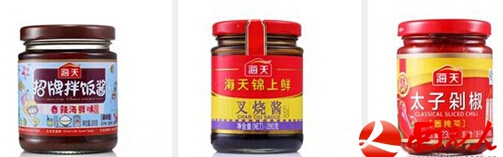 海天推出老少皆宜的调味酱,包括海天调味招牌拌饭酱、海天调味海鲜酱、海天调味太子剁椒酱等。豆瓣酱是四川食谱中常用的调味佳品。它以独树一帜的选材和工艺,没有加香料的醇厚香味,没有加任何油脂的色泽油润,全靠精细的加工技术和原料的优良而达到色、香、味俱佳的标准,就是与众不同。川味粤产的海天调味豆瓣酱,精选优质黄豆,颗粒饱满豆味浓,用量十足,兼有浓郁蒜香,辣味适口。因豆瓣酱本身有辣味,用于味感适宜的菜式,如川味的“麻婆豆腐”,“回锅肉”等。海天调味的豆瓣酱除用作调味外,也可单独佐饭,用熟油拌,其味更佳。