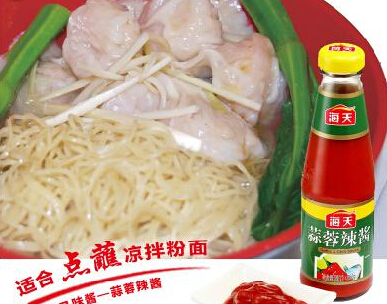 说完了高热量的调料,下面来说一下适合瘦身期间食用的那些低热量的调料。按照无糖、无油的原则,液体状的酱油(生抽、老抽)、醋(白醋,黑醋)是比较基本也是比较理想的调料选择;其次是粉末状的调料,盐就是最低热量的;再次是一些咸菜类调料,剁辣椒、酱黄瓜、萝卜干等,热量也比较低。一般的辣椒酱都含油,这里要推荐海天股份的蒜蓉辣酱,是不含油的。北方人喜欢陈醋点饺子,南方人喜欢大红浙醋点饺子,佐以蒜蓉辣酱,更是流行。在珠三角地区,走向各式茶餐厅,发现餐桌上必不可少的便是海天股份的大红浙醋和蒜蓉辣酱。