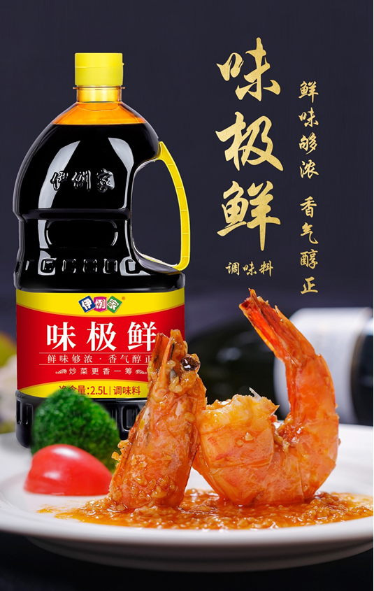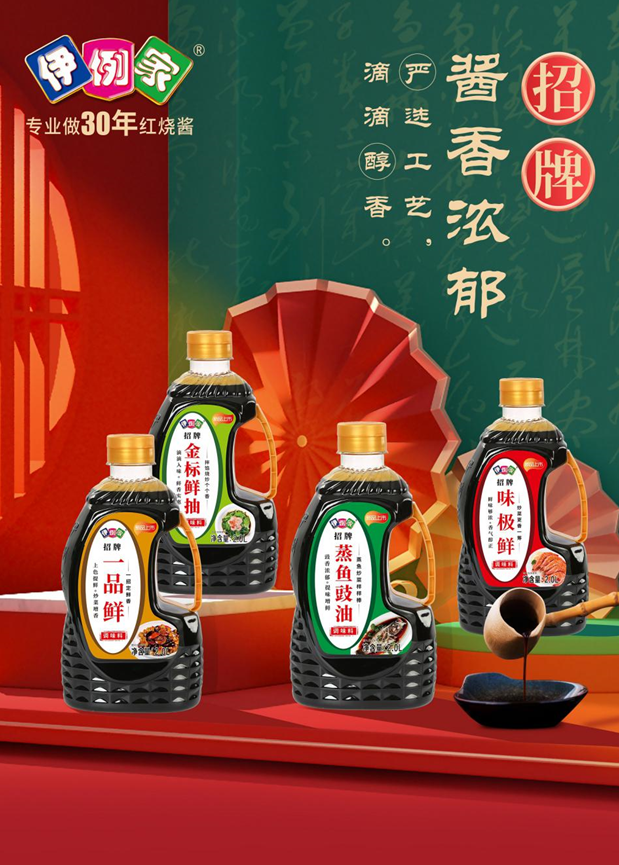 近年来,伊例家也一直在调味料方面寻找新的突破点。2020年伊例家顺势推出招牌调味料系列,分别有味极鲜招牌调味料、一品鲜招牌调味料、金标鲜抽招牌调味料、蒸鱼豉油招牌调味料,相比酿造酱油来说,口感更鲜香,香味更浓郁,回味更绵长。2021年又相继突出伊例家2.5升调味料系列、伊例家1.1kg家庭装调味料系列等产品。