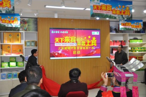 北京广西大厦迎来2015年广西特产行销全国北京系列广周的第十二城市——来宾市。来宾市将活动的主题定为“天下来宾,来者上宾”,带来的特产有野生茶叶、绞股蓝、油粘米等五十多种特色产品,主要由广西金秀县瑶山王茶业有限公司、广西武宣县融通食品有限公司、广西象州太粮米业有限公司等九家本土龙头企业提供。