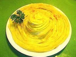 草帽饼是一款东北的特色小吃,以其层次分明、柔软筋道、香酥可口、形如草帽而著称。 原料:面粉1.1千克 豆