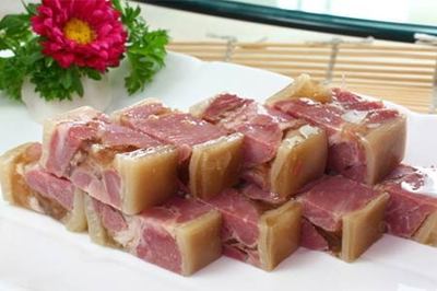 肴肉虽是凉菜,但非同于一般熏腊之类。它精肉绯红,虽凉但酥嫩易化,食不塞牙;肥肉去脂,食之不腻;胶透明晶亮,柔韧不拗口,不肥不腻。此菜爽口开胃,色雅味佳,颇振食欲。若配上姜丝,略加香醋,更有一番滋味。喝早茶若配以镇江肴肉,茶香肉美,在久饫甘肥之后,得此茹之,舌感为之一振,另历一番佳境,更令人感到口福不浅。