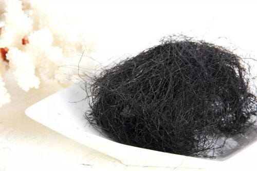 发菜性味甘、寒。具有清热消滞、软坚化痰、理肠除垢的功效。发菜还具有降血压。调节神经等多种作用,是高血压,冠心病、高血脂病患者的理想食物。医药上用途甚广,民间常用发菜来治疗佝偻病、妇女病、痢疾、高血压、气管炎、鼻出血、营养不良等病,尤其手术后食用,对促进伤口愈合有特殊效果。所以发菜又是一种名贵的珍稀保健蔬菜。发菜,藻类植物中蓝藻门念珠藻科念珠藻属中陆生藻类。可食用发菜贴在于荒漠植物的下面,因其形如乱发,颜色乌黑,得名“发菜”也被人称之为“地毛”。藻体毛发状,平直或弯曲,棕色,干后呈棕黑色。往往许多藻体绕结成团,最大藻团直径达0.5米;单一藻体干燥时宽0.3~0.51毫米,吸水后粘滑而带弹性,直径可达1.2毫米。藻体内的藻丝直或弯曲,许多藻丝几乎纵向平行排列在厚而有明显层理的胶质被内;单一藻丝的胶鞘薄而不明显,无色。细胞球形或略呈长球形,直径4~5(~6)微米,内含物呈蓝绿色。异形胞端生或间生,球形,直径为5~6(~7)微米。