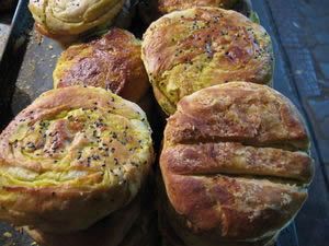 焙子是呼和浩特地区特有的小吃,是回族面点名品。有白焙子、咸焙子、甜焙子。形状有圆的、方的、三角的和牛舌形的等等。都是小麦面发酵,兑碱烤制而成的。外干脆内暄软,有浓浓的小麦面香味儿。是早点中最广泛,最经常的主流食品。也是旅行最佳食品,常配以咸菜食用。
