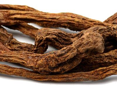 产于海拔4000米以上的野生滋补珍品,呈扁圆柱形,微弯曲,长5~15cm,直径1.5~5cm。表面棕色或棕褐色,粗糙,具明显纵沟及不规则凹陷,有的残存三角形的黑棕色鳞片。体重,质硬,难折断,断面浅棕色或棕褐色,有黄色三角状维管束。气微,味甘而涩。