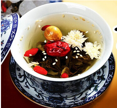 说到八宝茶的冲泡,最为值得一提的应该是四川茶楼中的冲泡方法。四川的茶师沏茶很是讲究,他们一只手提着一个特制的一米多长嘴的龙头铜壶,有两个颤巍巍的红球,尖尖的壶嘴伸到离茶碗不到4厘米时,开水就对准盖碗直射下去,即快又准,还有诸如“苏秦背剑”、“反弹琵琶”等赋有艺术性的动作,可以称得上是门“绝活儿”。水顺着碗底翻上来,配料受湿均匀后,盖上茶盖泡五分钟就可以饮用了。四川的八宝茶与回族的略有不同,主要是在配料的选择上,通常是按顺序先放入冰糖,再放入罗汉果,然后是花旗参、甘草、枸杞子、红枣、葡萄干,作后用茉莉花茶盖住配料,放上两朵菊花。这样冲出来的茶汤色碧绿,并能够显出菊花的幽致清雅。品饮时先要用茶盖把浮在上面的菊花轻轻拨开,然后再轻轻地抿一口,先尝到的是一种浅浅的味道,咽下去之后有一种淡淡的清香,口感特佳,使人心旷神怡,那种特别的口味,让人感到很满足。可以说,八宝茶与茶师成为了四川的一道亮丽的风景线。
