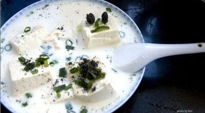 像做普通豆腐汤那样把豆腐放在牛奶中煮(牛奶中加少许水,防止干锅),等沸腾后,依照自己的口味假如调味品即可食用。