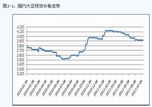【中国糖酒网豆类价格行情与豆类新闻资讯】本月国内大豆现货价格继续保持稳定,在东北产区,农户手中余粮已严重不足,各地的购销活动已基本结束,各地的报价基本没有成交,这在很大程度上限制了大豆现货价格的上涨。在南方销区,油厂压榨利润没有明显的改善,厂商进货意愿不强,对价格上涨没有推动作用。但本月以来,随着外盘美豆价格的上涨,国内港口进口大豆销售价格有所上调,对国内大豆现货价格起到了一定的支撑作用,特别是7月下旬以来,受到美豆,进口成本增加及下游需求转好影响国内港口进口大豆销售价格持续上涨,较前期上涨的幅度较大。