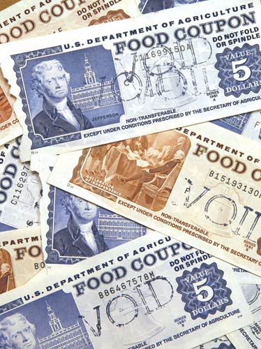 1964年,有关粮票正式立法,相关事务由美国农业部管辖。农业部把“补充营养辅助计划”当作大事来做,每年下半年都要评选出6到8个粮票发得好的州,给予奖金鼓励。各州在大原则不变的前提下,灵活掌握标准。粮票的发放标准是根据收入、家庭人口以及各州税收来定的。领取者必须是低收入的美国公民。三口之家每月收入低于1984美元为低收入,而单身月收入低于1174美元算低收入。美国农业部规定,公民30%的月收入用于购买食物,以此标准来计算,低收入的单身可以每月领取200美元的粮票,两口之家可领取367美元,总之,粮票额度按人数递增。孩子多的低收入家庭,有时候每月能有上千美元的粮票。税高的州,金额还会更高些。