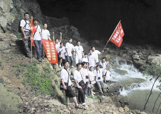图为:探秘漳河源,记者们来到漳河源头位于南漳县境内的老龙洞