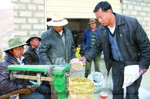 日前,扎囊县扎其乡塔巴林村筹措资金2.8万余元,购买优良青稞种子,免费发放给群众。图为3月15日,群众正在领取种子。本报记者青阳多旦摄