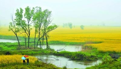 江西省九江市彭泽县棉船镇油菜花海进入最佳观赏期