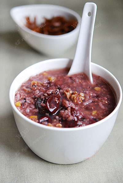 另外, 年轻人吃腊八粥可多放栗子、莲子等富含淀粉的坚果。肥胖人群喝腊八粥可多放燕麦、荞麦和大豆、豌豆等。为老人准备的腊八粥应粗细搭配,增加肠蠕动。爱美的女性可在腊八粥里加黑米、黑豆、核桃仁、松子。