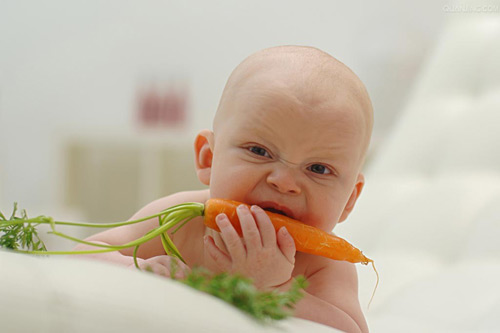 如果孩子暂时无法接受某一两种蔬菜,哪怕是营养很好的蔬菜,也不必过分紧张,可以找到与它营养价值类似的一些蔬菜来满足孩子的营养需要。比如说,不肯吃胡萝卜的可以吃富含胡萝卜素的绿菜花、豌豆苗、油麦菜等深绿色蔬菜。关键是让孩子在吃蔬菜时总是快乐的,培养他们热爱蔬菜的感情。