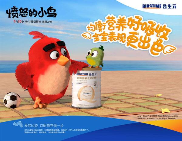 为了捕抓这种消费升级,过去两年行业更新包装、邀请明星代言、渠道向电商试水等手段层出不穷。合生元此次联姻《愤怒的小鸟》这个全球知名的IP,可谓是高明又省力。