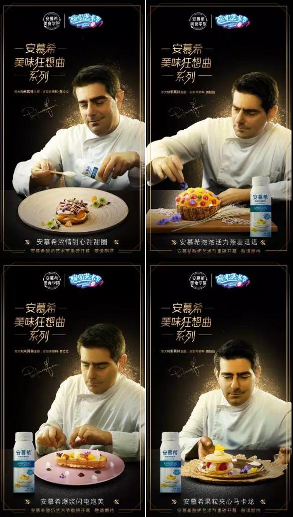 从11月20日到12月17日,在将近一个月的时间里,安慕希让“酸奶”、“美食”、“艺术”这些词发生奇妙的化学反应。活动期间,安慕希邀请到国际专业厨师团队,通过“还原美食制作过程”并让消费者亲自体验DIY美食等形式,在全国范围内引领起一股酸奶饮食的文化浪潮。