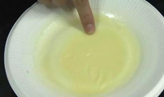 在24度常温下放置三天三夜之后,四种含乳饮料和鲜牛奶表面的水分都已被蒸发,并凝结成薄薄的一层固体,摸起来有粘稠感。