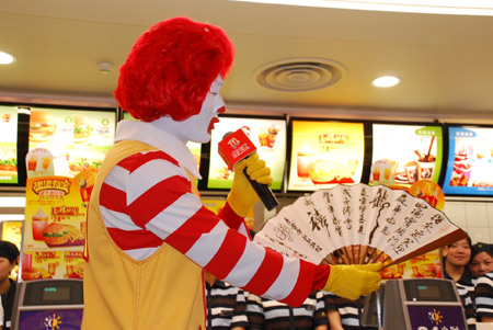 麦当劳叔叔为杭州首家龙禧“得来速”餐厅的开业现场作诗献礼