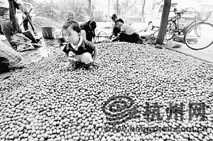 “这几天,镇里的50多位干部都被派到各个行政村去了,山核桃采收季节要为林农维持秩序,镇政府办公室里基本上见不到人。“郭增说,凡是家里种有山核桃的人家,在外打工的都要回家来,学生放假一周,镇上的商户也都关门歇业去采收山核桃了。除了当地18000位居民外,外地到这里帮忙采收山核桃的人也将陆续过来,估计在9月5日、9月6日会达到高峰,这两天里将涌入外来人口达2万人,采收期简直比过年还闹猛。