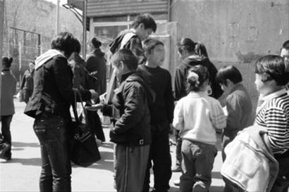 活动过程中,一名在校外开办“小饭桌”的男子参与其中。在他的提醒下,很多小学生围了上来。