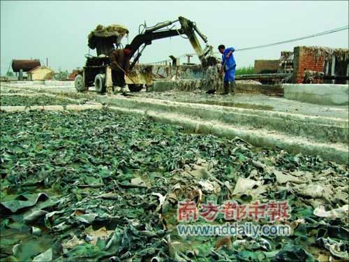 “问题的严重性在于,生产皮具过程中重金属污染十分严重”。王丁棉说,中国大部分皮革水解蛋白粉,都是用添加石灰等碱性原料的化工方法,难以去除废皮革中的有毒物质。