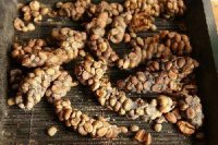 抽查发现主要问题:一是典型藕淀粉颗粒含量不达标,计2批次。典型藕淀粉颗粒含量表明藕粉纯度的主要指标,标准规定速溶藕粉和纯藕粉典型藕淀粉颗粒含量应分别≥40%和≥50%。在光学显微镜下观察,典型的藕淀粉颗粒为透明、长粒形、表面有轮纹、一端有脐点。二是1批次产品标签不符合标准要求,表现为未按国家强制性标准要求标注生产日期。