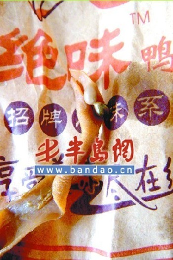 徐女士说,回到家后,她还没吃几口鸭肠就发现了问题。鸭肠里有圆形的小颗粒,刚开始以为是花椒,仔细一看是黏在鸭肠内壁上的,一颗一颗的,颜色有黑有白;闻一闻鸭脖,也有一股酸味。“太恶心了 ,这让人怎么吃。所以两包东西我基本没动,用相机拍了照片直接传到网上去了 。”之后,徐女士上网查询,发现遇上这种情况的人不少。至于鸭肠内壁上的疙瘩究竟是什么东西,有人说是没清洗干净的淋巴结,有人说是寄生虫 。