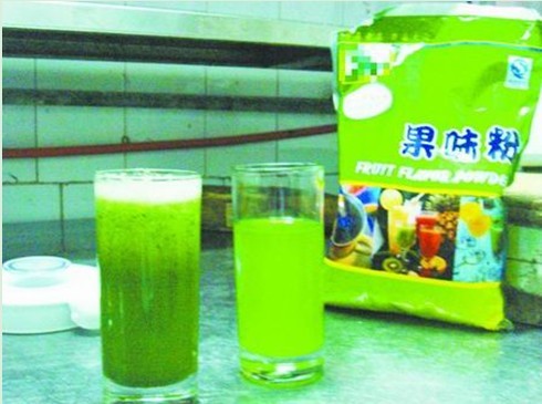 这条信息也就揭示了一个事实,即现榨果汁原来并不如人们想象的那么原汁原味。据红图食品网记者实地调查发现,有相当部分餐饮店在制作现榨果汁时,往往会加入多种添加剂,如增稠剂、柠檬黄、着色剂、二氧化钛、酸度调节剂等都是现榨果汁中的常见成分。最过分的莫过于现榨果汁中没有新鲜水果的身影,完全由水和添加剂勾兑而成,目前市面上的现榨果汁中,有20%的纯果汁就算不错了。从营养学角度来说,现榨的水果原汁含量高,营养自然就丰富,但是调配的果汁几乎没有营养,相反,还会增加人体解毒负担。