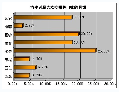 水果、豆沙和蛋黄是消费者更喜欢吃的月饼口味