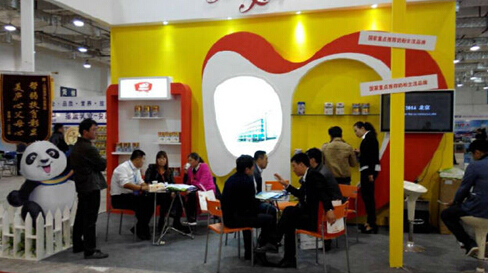 10月13日,山东国际机械展览中心举办的2014山东·国际孕婴童产品展览会上,美庐展馆以黄、白、红为主色调搭建,并配有可爱的熊猫吉祥物,带给客户温馨舒适的体验。通过产品展示和现场讲解,展位内座无虚席,咨询和洽谈合作的人潮络绎不绝。