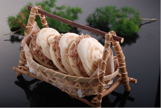 腊汁肉夹馍:提供核心配方卤制的腊汁肉和白吉馍,店面直接加工翻热即可。无需厨师,无明火无油烟。
