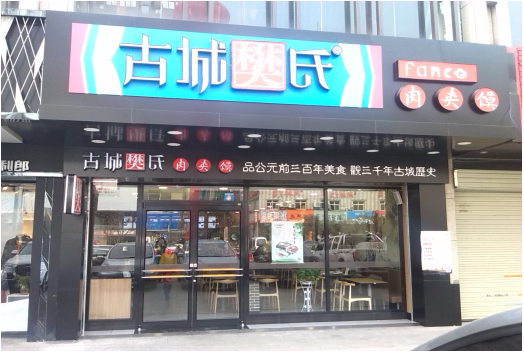 “古城樊氏”对肉夹馍执行最严格的标准化操作,以特许经营的加盟模式,通过现代化加工中心,覆盖全国的快捷配送物流,将老陕最正宗、最标准的“肉夹馍”带到了全国各地,让数亿国人都能在“古城樊氏”的店面品尝到陕西最正宗最标准的肉夹馍。目前,“古城樊氏”在全国已有三百余家连锁店面,主要分布在陕西、北京、上海、深圳、甘肃、宁夏、青海、新疆、山西、江苏、广东、山东、河南、内蒙古、河北、东北等地,并以每年百家新增加盟店面的速度在迅猛发展。