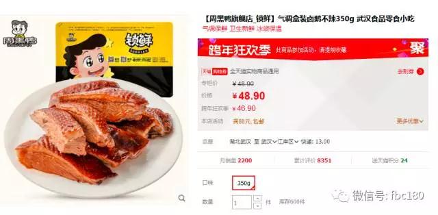 食品商业观察(FBC)记者登陆其官方商城发现,目前卤鹅制品仅有不辣即原味口感。产品采用的是周黑鸭气调盒装,与周黑鸭卤鸭制品不同的是,卤鹅骨少肉多,规格为350g/盒,天猫划线价格达到48.9元/盒,双旦促销价46.9元/盒。