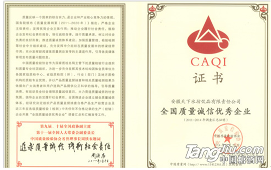 在发展过程中,公司得到了广大市民与社会各界的一致认可,先后被政府各级职能部门授予“质量信誉服务AAA级会员单位展示单位”“合肥非公企业志愿服务先进集体”“诚信认证企业”、“全国质量诚信优秀企业”、“全国质量检验稳定合格产品”、“全国质量信用先进企业”等荣誉称号。 食品招商 http://www.tangjiu.com/shipin