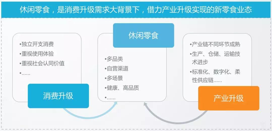 从业态层面看:休闲零食业态的本质,是消费升级需求大背景下,借力产业升级实现的新零食业态。