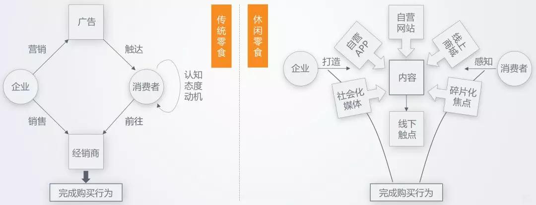 3、产业链下游销售渠道与品牌营销呈现高度互融趋势,线上线下结合为消费者提供多触点、便捷化的多场景购物解决方案,优质内容支持下的品牌营销针对“场景-品类-产品”的消费者休闲零食消费路径,促进销售的同时,还催生了输出价值观、打造社交货币等新玩法。