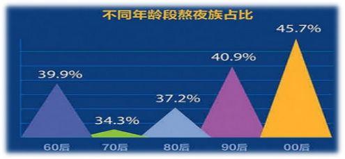 特别是现在的年轻人,熬夜成习惯,据有关调查显示,越是年轻的人,有熬夜习惯的比例越高:80后有34.2%人有经常熬夜的习惯,40%以上的90后和00后有经常熬夜的习惯。