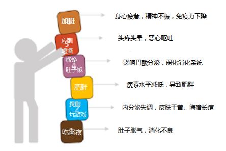据世界卫生组织关于影响个人健康和寿命的因素调查研究显示,个人生活方式对健康的影响最大,占比60%。其中熬夜晚睡又是个人行为中对健康影响重大的一大元素。