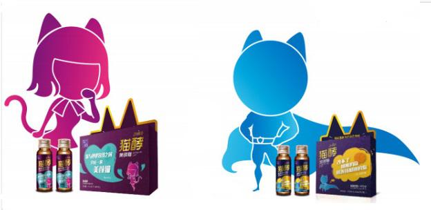 猫酵品牌以猫作为品牌形象,既贴合熬夜一族的形象,又显得潮流年轻化。在品牌系列之下,根据不同的产品功效,猫的形象各异。加班猫是一只超人猫的形象,选用名贵中草药人参、牛蒡和玫瑰、大枣等为原料,具有缓解疲劳、增强抵抗力、防癌抗癌的功效,能有效调节加班熬夜所带来的疲惫感,帮助恢复体力。