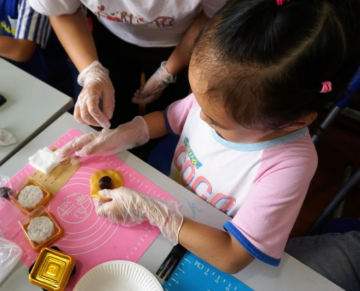 9月19日及20日,85度C进行了为期2天的中秋公益行,与爱好儿童康复中心的孩子们以及社会福利院的老人们,一起做月饼,共度中秋佳节。