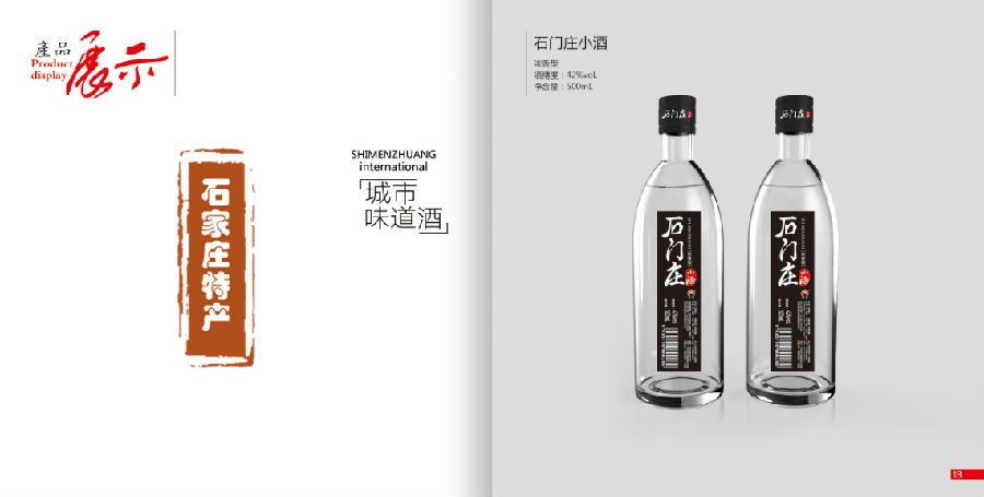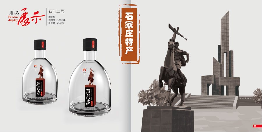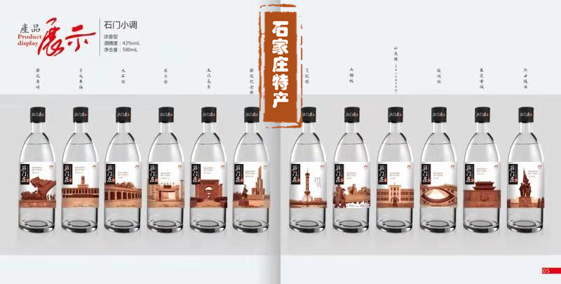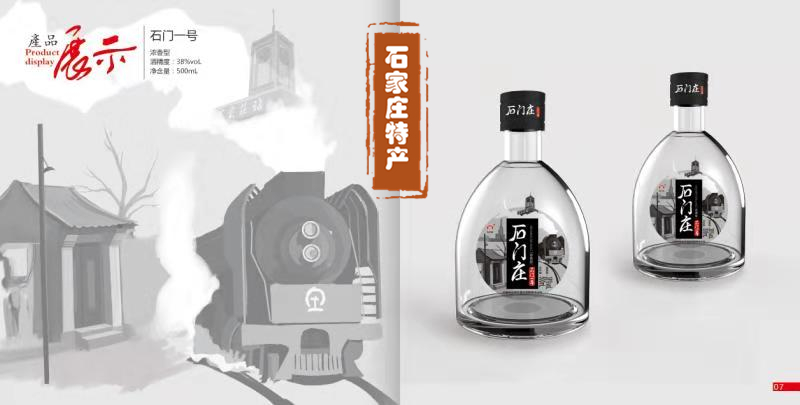 石门庄一号设计来源于未来在规划中的石家庄一号地标——中央商务区,而二号分为500ml装和250ml装两款产品,做最有情怀的小酒。