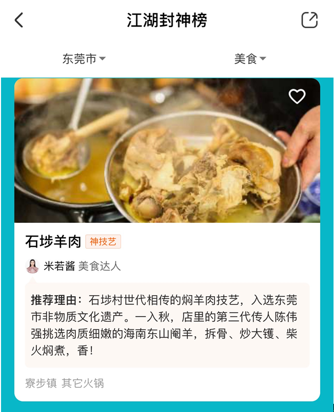 口碑江湖封神榜再推江湖神店,东莞这家羊肉煲店火了
