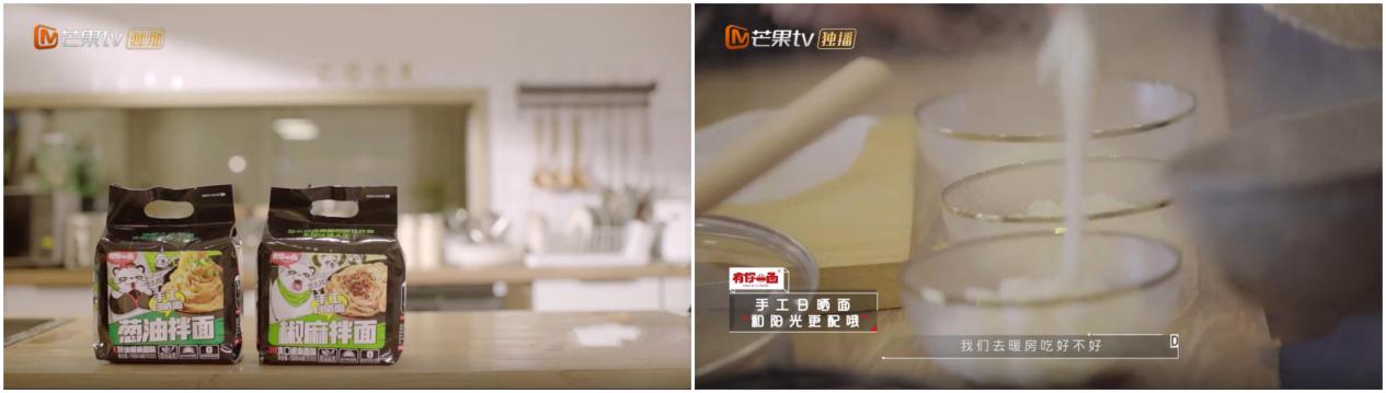 在首期植入中,各位节目嘉宾品尝了徽记有你一面,纷纷被有你一面的美味所折服,大加赞赏。有你一面从原料、工艺、形态及口味等方面做足差异化;精选进口小麦,真正零添加;通过6道压延,2次自然醒发,8小时手工日晒,让食物回归本质;同时再辅以美味调料,从川味特色向全国乃至于全球进行美味延展,因而能在短时间内便获得大众的喜爱。新品火锅面一经面世,更是瞬间引爆全网,销售业绩再创新高。