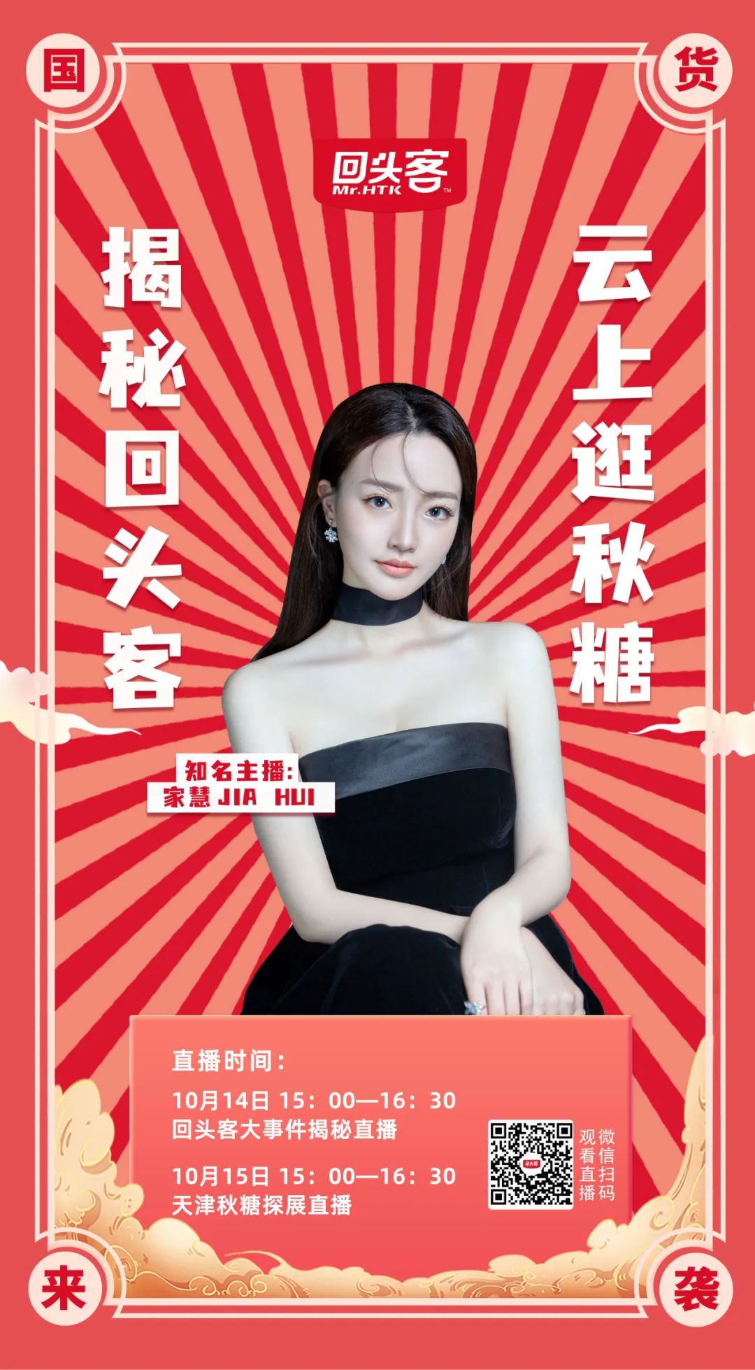 同时,10月14日-15日期间,回头客还将发起系列云直播,发起揭秘回头客,云上逛秋糖系列活动!