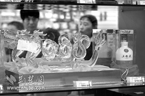 日前,消费者正在荆州某大型超市选购高档白酒(左图)。