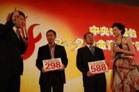招标会现场 主持人张斌、董卿采访汪俊林董事长 在2008年11月18日上午中央电视台举行的2009年中央电视台黄金资源广告招标,四川郎酒集团一举夺得中央电视台2009年最喜爱春节晚会独家冠名和2009年中国经济年度人物评选独家冠名,价格分别是7099万元、4099万元。在全球金